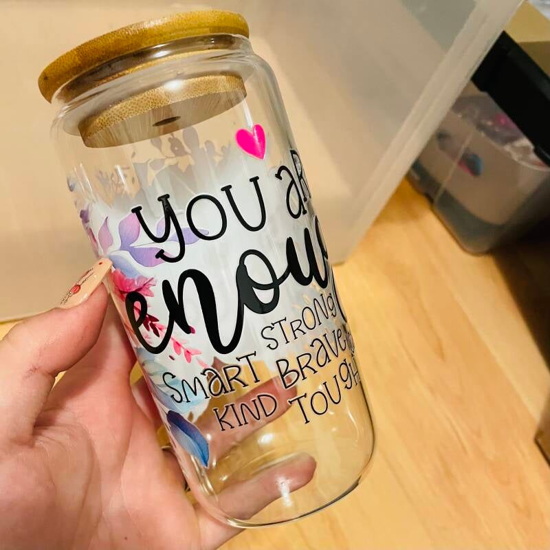 Verre 550ml avec couvercle bois. Sur différent thème de décor.